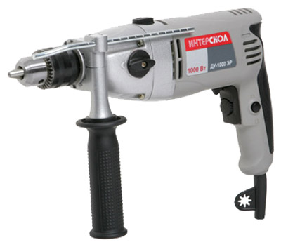 Ударная дрель Интерскол ДУ-16/1000ЭР имеет две скорости сверления - пользователь может выбрать подходящую. Корпус редуктора выполнен из алюминия. Есть два рабочих режима: сверление и сверление с ударом. Дрель обладает системой электронной регулировки частоты вращения. Данный инструмент подходит как для профессионального, так и для бытового использования
