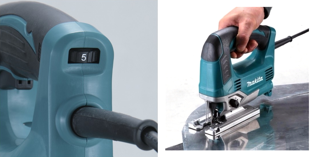 Пять скоростных режимов работы лобзика макита плавно регулируются при помощи поворота регулировочного колесика. При этом частота хода пилки изменяется от 500 до 3100 движений в минуту