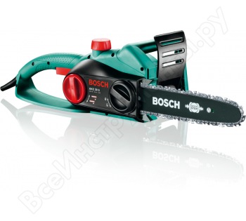 Садовая цепная пила Bosch AKE 30 S весом около 4 кг с электродвигателем мощностью 1800 Вт распиливает древесину всех пород вдоль и поперек волокон. Хромированная цепь на 30-см пильной шине движется со скоростью 9 м/с. Толщина звена цепи 1,1 мм. Безинструментальная натяжка цепи. Автоматическая смазка. Тормоз для защиты от обратного удара и улавливатель цепи.