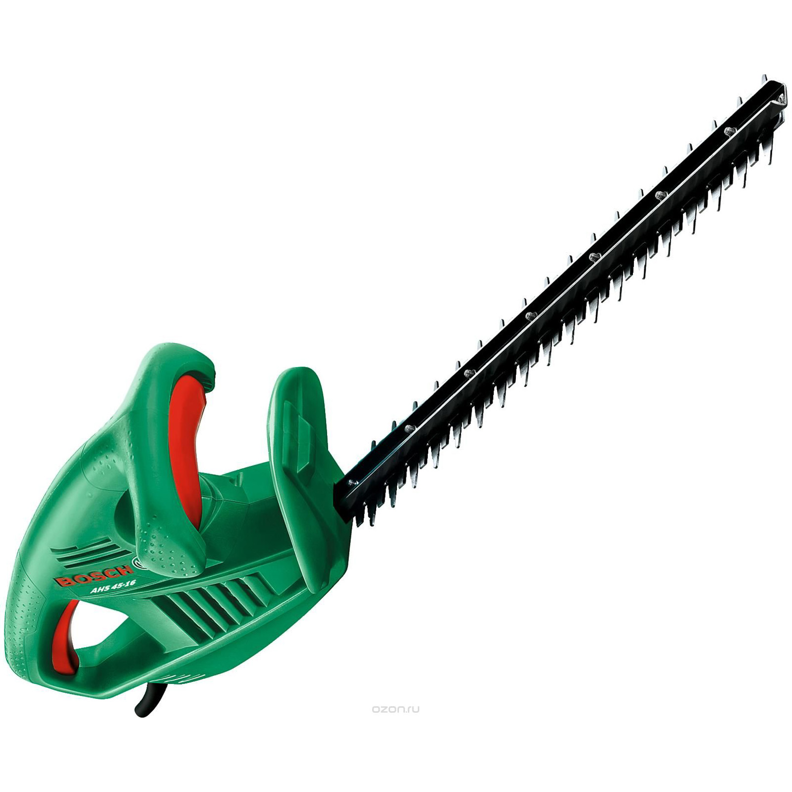 Кусторез Bosch AHS 45-16– это превосходный помощник для владельцев небольших и средних участков с живой изгородью. В его комплектацию входит качественный электрический двигатель мощностью 0,42 кВт способный выдавать 3200 об/мин, что весьма положительно сказывается на производительности устройства, и что не маловажно, на качестве выполняемой работы.